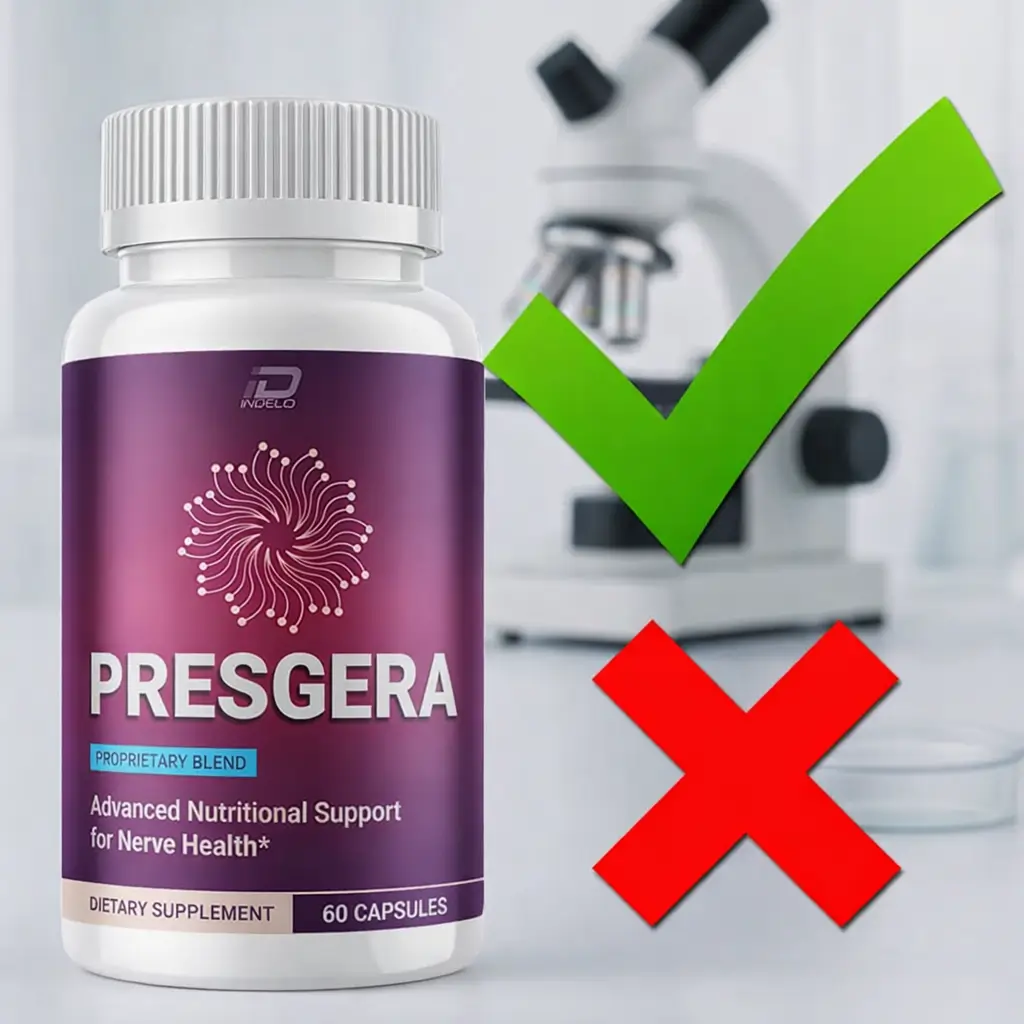 Presgera is a dietary supplement designed to support nerve health and help relieve discomfort such as tingling, burning, numbness, and nerve sensitivity.